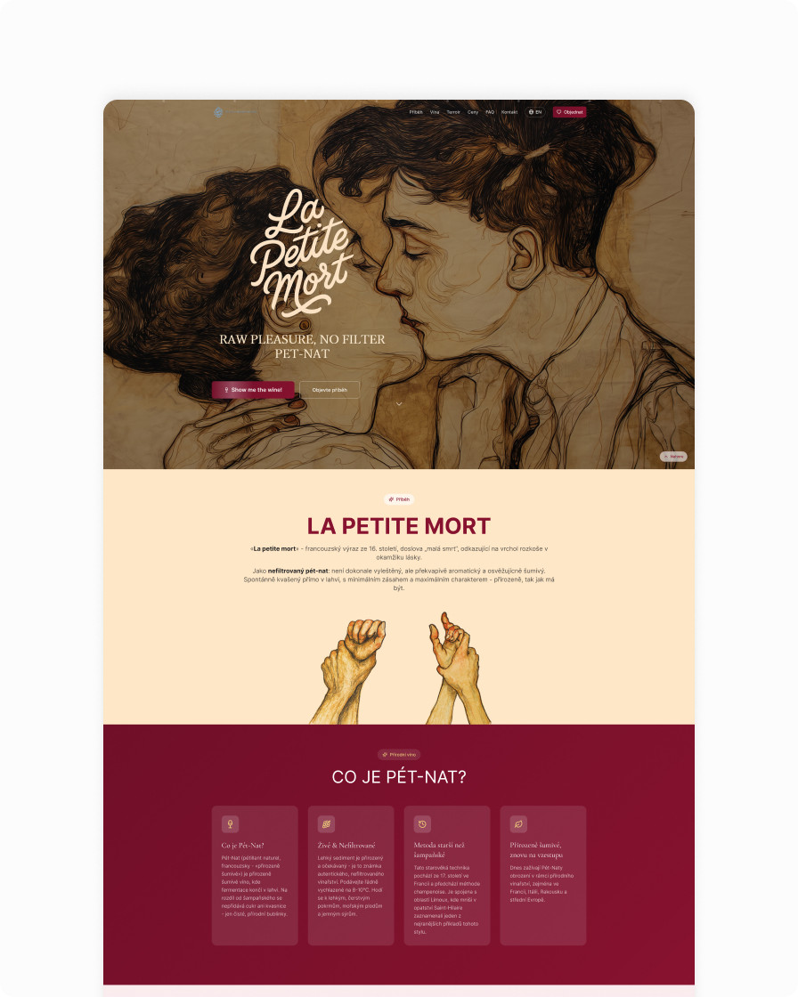 AI‑powered website for the La Petite Mort wine brand in Prague, showcasing the wine collection and conveying the brand’s atmosphere.